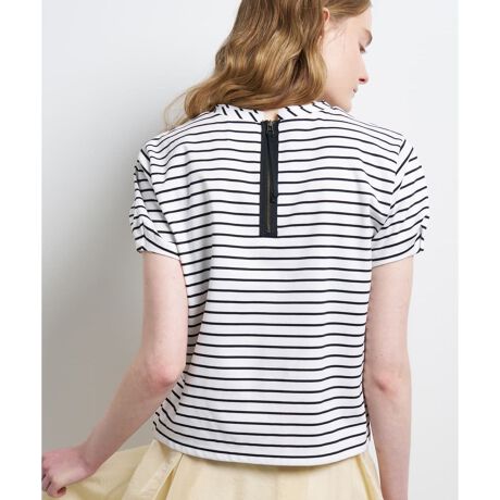 コンパクトなシルエットは、ボリュームのあるスカートやワイドパンツともバランス良く決まります。無地とボーダーの選べる4色展開で、きれいめな通勤スタイルから休日のカジュアルコーデまで、幅広いシーンに活用可能です。