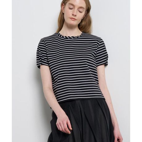 コンパクトなシルエットは、ボリュームのあるスカートやワイドパンツともバランス良く決まります。無地とボーダーの選べる4色展開で、きれいめな通勤スタイルから休日のカジュアルコーデまで、幅広いシーンに活用可能です。