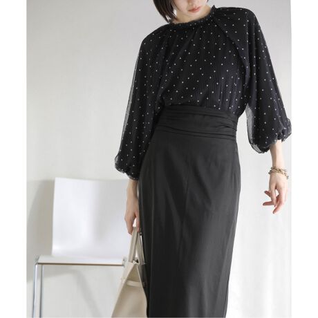 すっきりとしたシルエットが魅力のウエストタックタイトスカート。