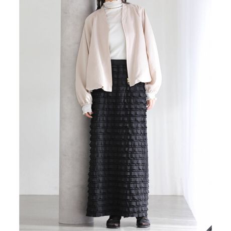 サイズ感:ウエストはゴム仕様でジャストサイズ。フラットシューズを履いて裾が地面につかないぎりぎりの丈。