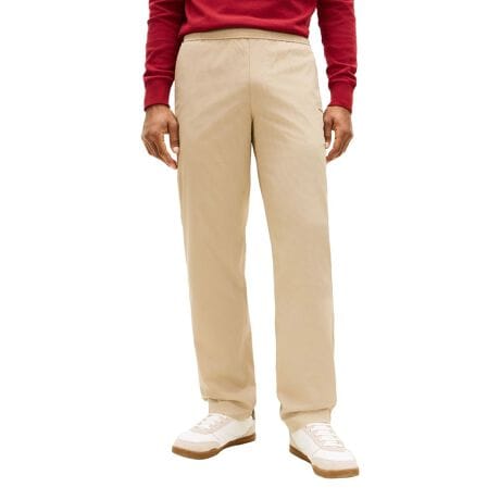 カジュアルスタイルの定番として高い汎用性を発揮するチノパンツ。動きやすさ重視のウエストゴム仕様で、シルエットは緩やかにテーパードをかけてレッグラインほすっきりと見せています。左ポケット下とヒップ右上のブランディングがアクセント。穿き心地も軽やかで、デイリーの様々なシーンで活躍します。