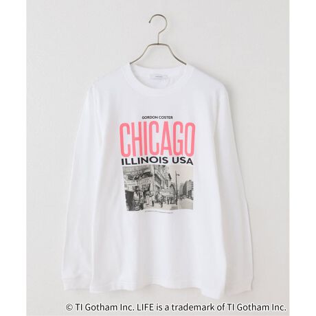 「CHICAGO」のロゴとモノクロフォトを組み合わせたデザインは、1枚で着てもレイヤードしてもスタイリングが決まります。