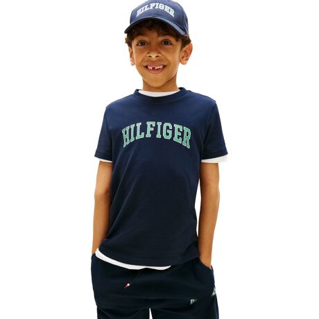 TOMMY HILFIGER流のバーシティTシャツ。緩くアーチを描く、HILFIGERのロゴがアクセントを効かせています。すっきりとしたコンパクトなサイズ感で、毎日アクティブに動き回るキッズにぴったりのアイテムです。ソフトなコットン素材を使用しており、着心地も快適に仕上がっています。デイリーユースに最適。