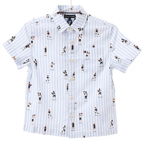 ストライプを基調に、バスケットボールプレイヤーの総柄を重ねた、遊び心たっぷりなキッズらしいシャツ。暑い時期に最適のショートスリーブで、一枚着にも羽織にも、もちろんインナーにも活用できます。ストレッチ感のあるコットン素材で、アクティブな動きに追随。お出かけから日常まで、幅広く活躍します。