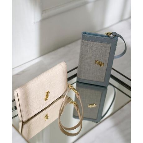 異素材コンビネーションがエレガントなフラグメントケース。表面感のあるシャンブレー素材となめらかなスムース合皮を組み合わせた上品なルックスが魅力です。カードや定期、カードキーなどを収納でき、二つ折りで中身が見えないところもポイント。ストラップと2つのポケット付きで、可愛さと利便性を両立したデザインです。※撮影時照明の関係により、色味が違って見える場合がございます。またパソコン・スマートフォンなどの環境により、若干製品と画像のカラーが異なる場合もございます。予めご了承ください。商品の色味は、商品単品画像をご参照下さい。※商品画像はサンプルのため、色味やサイズ等の仕様に変更がある場合がございますので、予めご了承ください。
