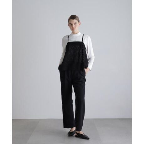 特殊な撚糸をした太番手のコットンを、大胆なモチーフに刺繍をしたケミカルエンブロイダリーレースで仕立てました。
