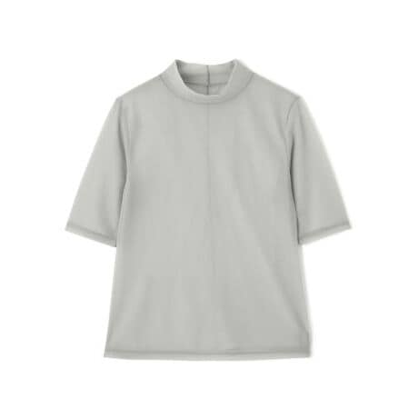 程よい高さの襟が、ジャケットやワンピースのインナーとしてもバランスよく収まります。