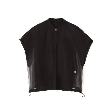 バンドカラーのブラウスで脇部分のパーツがシアー素材になっています。