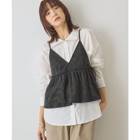いつものスタイルに重ねて一気にこなれるレザーライクビスチェ。ロングTシャツやインナーにプラスするだけでボヘミアンカジュアルスタイルが完成します。華奢なストラップやギャザーフレアディテールが女性らしい印象をプラス。1枚持っておくとおしゃれの幅がグッと広がるおすすめのアイテムです。透け感[なし]