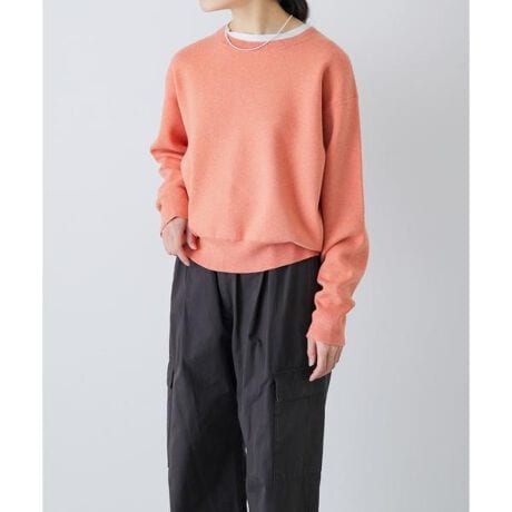 綿カシミヤ素材が肌触りの良いクルーネックニット。肌寒い春先にも着られる厚みの編地に仕上げました。滑らかで目面が整っていてクリアなムードがきちんと感を演出。スウェットのようなリラックスした着心地で、袖口と裾のリブはしっかりとしているので程よく抜けた雰囲気があります。同素材でパンツもご用意しています。