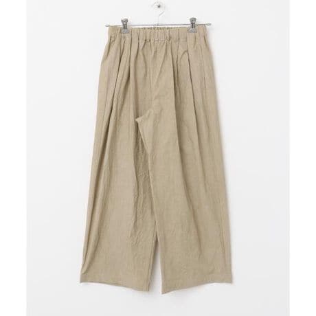 どんなスタイリングにも合わせやすいボトムスが届きました。フロントの2タックが立体感を生み、ワイドながらもどこかスッキリとしたストレートシルエット。カジュアルな中に程よいきちんとした雰囲気が表現されています。遠州染めならではの色味と風合い豊かな生地が存在感のある装いを後押し。強風と日光を浴びた独特なムラや細かなしぼが特徴です。カットソー・ブラウス・ニットまであらゆるトップスに寄り添い、着まわし力の高い一品。ウエストは総ゴム+紐付きのイージー仕様なのもうれしいポイント。同素材で他のアイテムもご用意しています。ジャケットやシャツとのセットアップコーデもおすすめです。