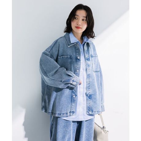 ゆったりとしたボックスフォルムが今年らしいデニムブルゾン。シャツディテールはそのままに、アウターとして合わせられる着回し力に優れたデザインです。高めの位置に配置した大きめのチェストポケットも旬なポイント。スナップボタンで着脱しやすく、ロングシーズン活躍してくれるおすすめのアイテムです。ドロップした丸みのあるシルエットがレディな装いにも好相性。透け感[なし]