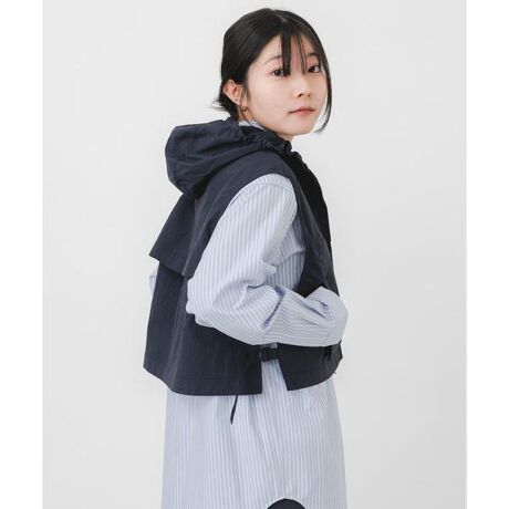 撥水・UV機能があり、ドライタッチな質感で清涼感のあるナイロンタッサー素材を使用したユーティリティフードベスト。ポケットが4ヶ所もありバッグ無しでお出かけできるのも嬉しいポイントです。ブランドロゴ入りのスピンドルを使用し特別感を。背中はメッシュを使用したベンチレーション仕様でアクティブ感を出しました。同素材のナイロンタッサーシリーズとのコーディネートもおすすめです。