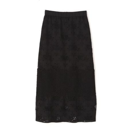コットンローンをベースに刺繍レースを施したアイレットエンブロイダリー素材を使用したスカートです。