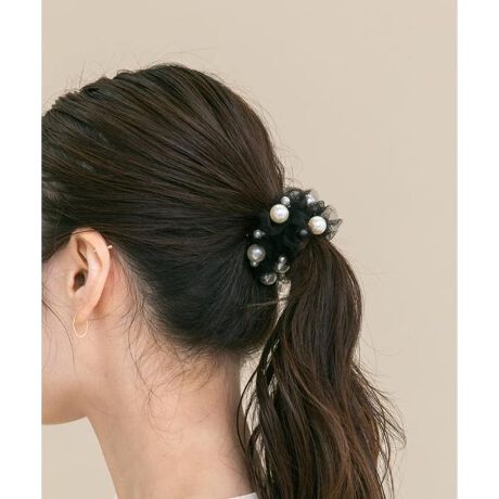 チュールのフリルにパールをあしらった、やわらかな甘さが魅力のシュシュ。控えめなデザインで主張しすぎず、スタイリングのアクセントとして取り入れやすい一品です。まとめ髪にさっと合わせるだけで、程よく華やかな印象に。セレモニーやオケージョンシーンにはもちろん、きれいめな装いの仕上げにもおすすめです。