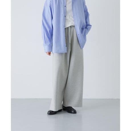綿カシミヤ素材が肌触りの良いパンツ。体型を拾いにくい程よい厚みの編地に仕上げました。滑らかで目面が整っていてクリアなムードがきちんと感を演出。ウエストはオールゴムでスウェットのようなリラックスした着心地が嬉しいポイント。ワイドなストレートシルエットがこなれ感を高め、カジュアルになりすぎない一品です。同素材でトップスもご用意しています。