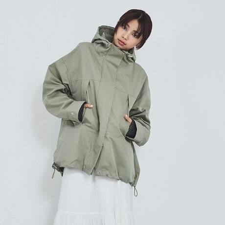 ・裾のドローコードで、スタイリングに合わせてシルエット調整可能