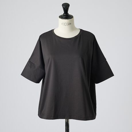体のラインを拾わないゆとりのあるシルエットながらも、丈は短めなのでルーズにならず、バランスが良いデザインです。