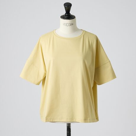 体のラインを拾わないゆとりのあるシルエットながらも、丈は短めなのでルーズにならず、バランスが良いデザインです。