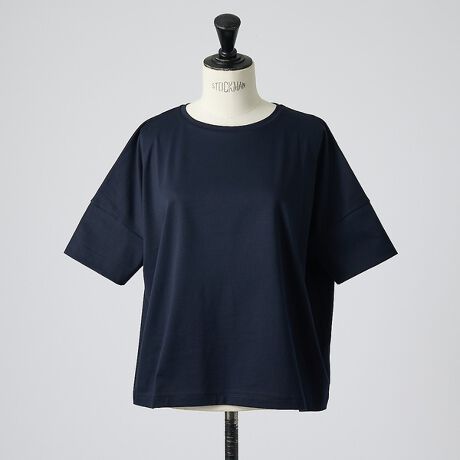体のラインを拾わないゆとりのあるシルエットながらも、丈は短めなのでルーズにならず、バランスが良いデザインです。