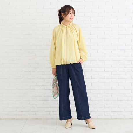 ・センターの切り替えが縦のラインを強調し、スラックスのような上品さをプラス