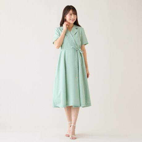 ・ラップ風のシャツデザインは上品かつ女性らしい印象に