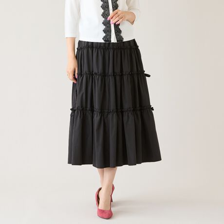 ・軽やかに揺れる4段ティアードが華やかで、歩くたびにふんわりとした可愛らしさを演出