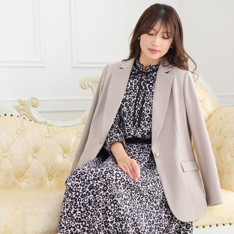 素材選びからデザイン、パターンまでを一貫して行い、タックの向きやギャザー分量、フリル位置などを36・38・40号と42・46・50号では調整し、パターンを分けることで美しいシルエットと着心地の良い服を提案します。