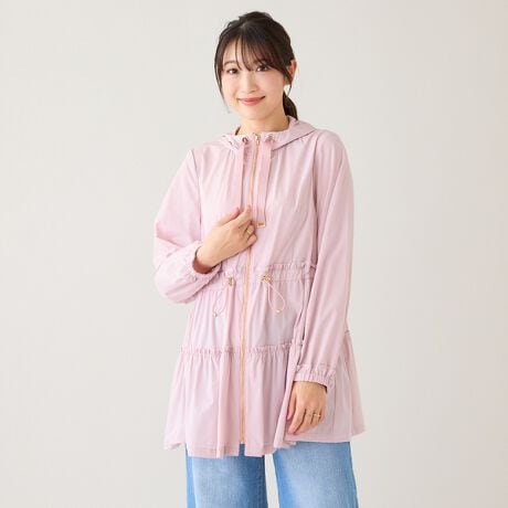 ・フード、ウエスト部分はゴムで調整可能で、シルエットの変化を楽しめます