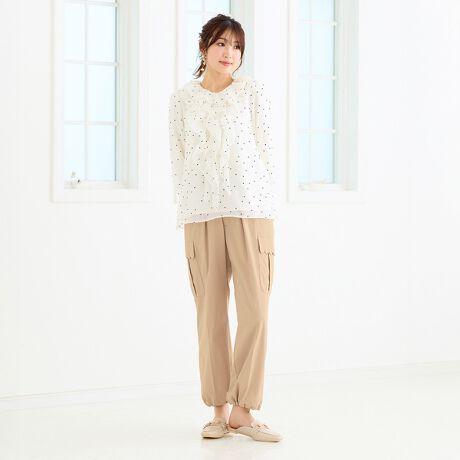 ・裾には調節用のゴム入りで、絞ってシルエットを変えれば雰囲気チェンジも楽しめる