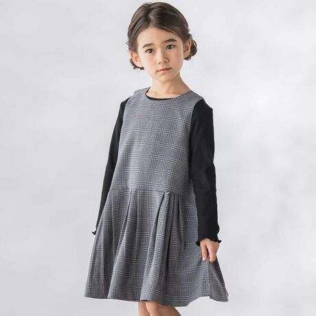 上品なグレンチェックを主役に、ふんわり広がるシルエットが可愛いジャンスカです。