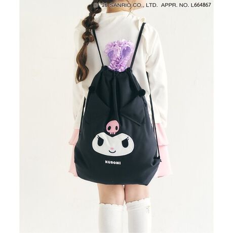 [型番:V274906]≪子供服 apres les coursの「サンリオキャラクターズ」コレクション≫持ち手付きで使いやすいナップサック。単体使いはもちろん、ランドセルの上から背負えるのも嬉しいポイント♪#apreslescours【サイズ情報】F:タテ40 ヨコ33 紐長さ140