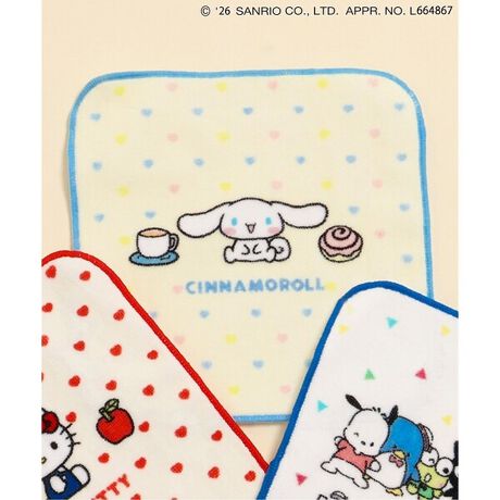 [型番:V260906]≪子供服 apres les coursの「サンリオキャラクターズ」コレクション≫パイル素材で使いやすい、サンリオキャラクターズのミニタオル。通園・通学など、大活躍まちがいなし♪#apreslescours【サイズ情報】F:タテ15 ヨコ15