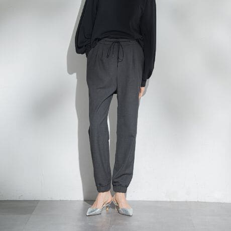 裾はジョグ仕様で足元に軽さをプラスし、パンプスやフラットシューズとも好相性。