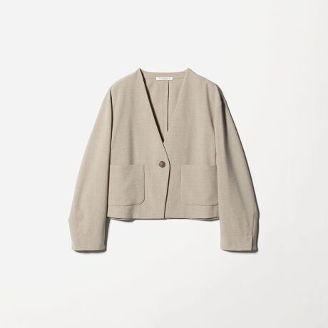 カラーレスのすっきりとしたデザインと裏地のない軽やかな仕立てで気軽に羽織れるジャケットをお作りしました。