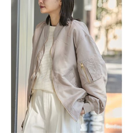 ヒップが隠れるゆとりのあるシルエットと、ほど良い光沢感、しなやかさのある素材感で大人の女性も着やすいMA-1。