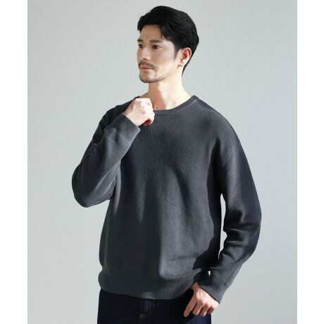 【シルケット加工/マシンウォッシャブル/抗ピリング】コンフォートベーシック畦クルーネックニット