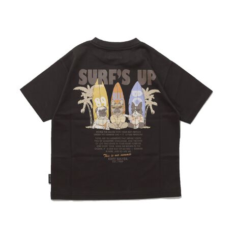 鼻ぺちゃワンちゃんの三大巨頭「パグ」「フレンチブルドッグ」「ボストンテリア」が趣味のサーフを仲間と楽しむグラフィック。