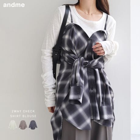 マルイウェブチャネル   /   アンドミー   /   トップス   /   ブラウス   /   イージーケア 2way チェック シャツ ブラウス キャミソール ビスチェ