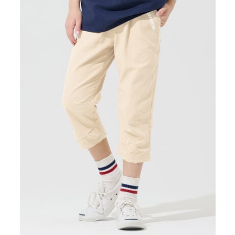 汗や水分を吸収しやすい綿素材を使用し、凹凸のある織り方にすることで通気性を高めたクロップドパンツです。