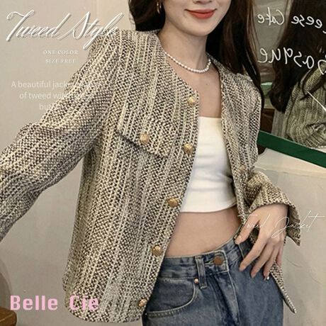 Outer/ノーカラーツイードジャケット ST/No.22337