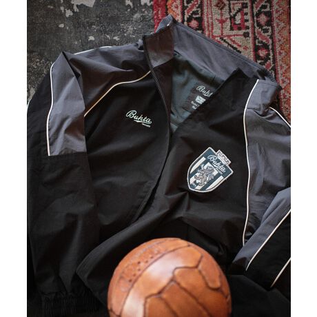 急な雨天時にも対応できる、軽撥水加工を施した合繊素材を使用したトラックジャケット。