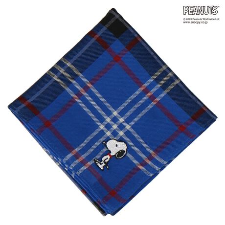 使い易いチェック柄のハンカチに、可愛らしいスヌーピーのワンポイント刺繍を施しました。プレゼントにもおすすめな一枚です。
