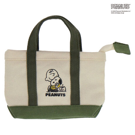 チャーリー・ブラウンとスヌーピーがプリントされたキャンパストート型の可愛らしいミニサイズのポーチ。コスメや小物の収納にぴったりです。箱入りでギフトにもおすすめです。