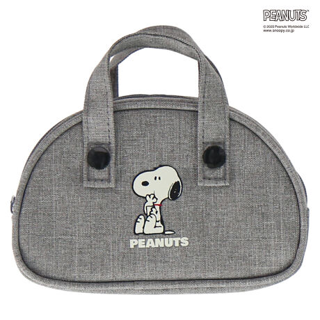 チャーリー・ブラウンとスヌーピーがプリントされたボストンバッグ型の可愛らしいミニサイズのポーチ。コスメや小物の収納にぴったりです。箱入りでギフトにもおすすめです。