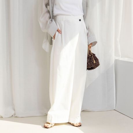 ・程よいワイドシルエットでトップスを選ばずスタイリングが決まるパンツ