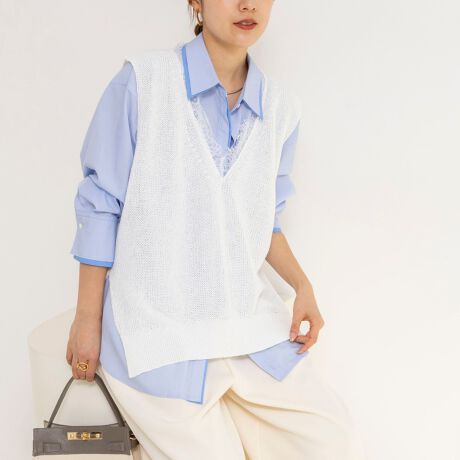 ・麻のシャリ感と、ざっくりとした編み地が涼しげなジレ