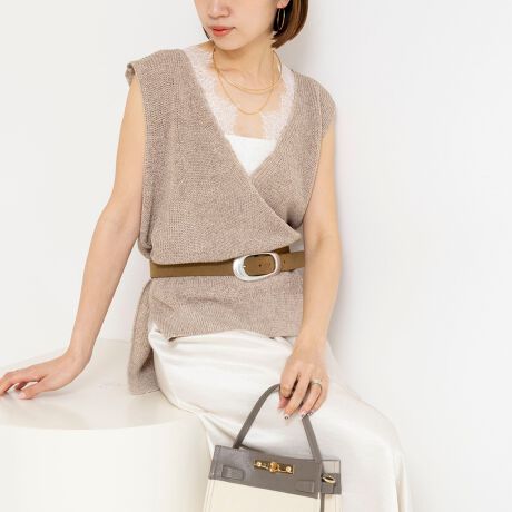 ・麻のシャリ感と、ざっくりとした編み地が涼しげなジレ