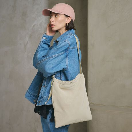 マチのないすっきりとしたフォルムで、肩掛けや斜め掛けした際にも身体に沿うおさまりの良い形もポイント。