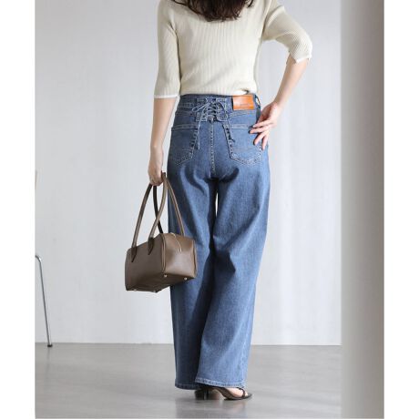 バックレースアップのデザイン性のあるワイドデニム。